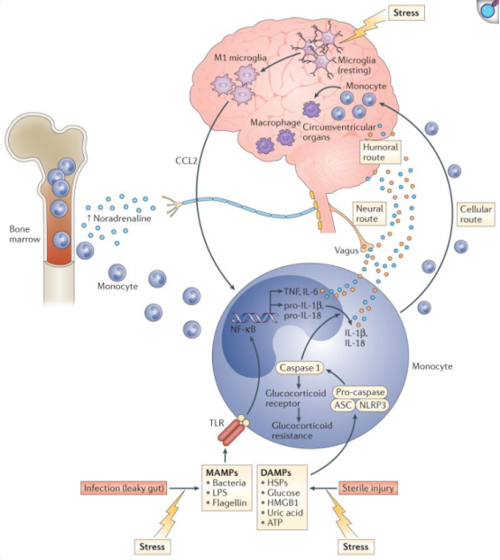 压力引起的炎症信号传递大脑流程图[5]