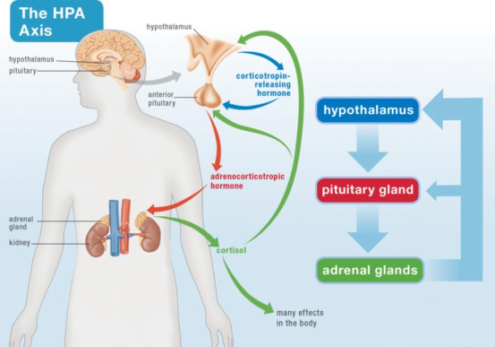 HPA轴是指下丘脑-垂体-肾上腺轴,这是身体应对压力的核心系统。长期慢性压力会使HPA轴持续“报警”,导致皮质醇等激素水平居高不下,进而损伤脑细胞,引发情绪障碍[4]。